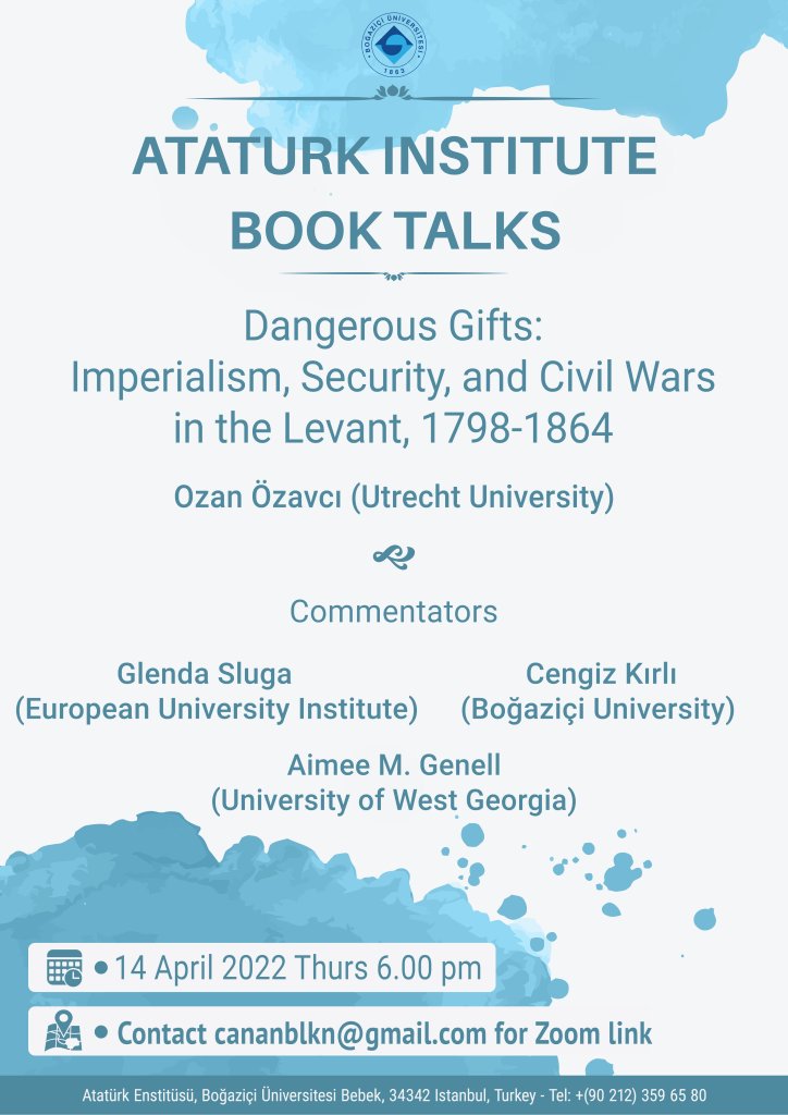 Özavcı’s book “Dangerous Gifts: Imperialism, Security, and Civil Wars in the Levant, 1798-1864” will be discussed with the participation of Cengiz Kırlı, Glenda Sluga and Aimee M. Genell.