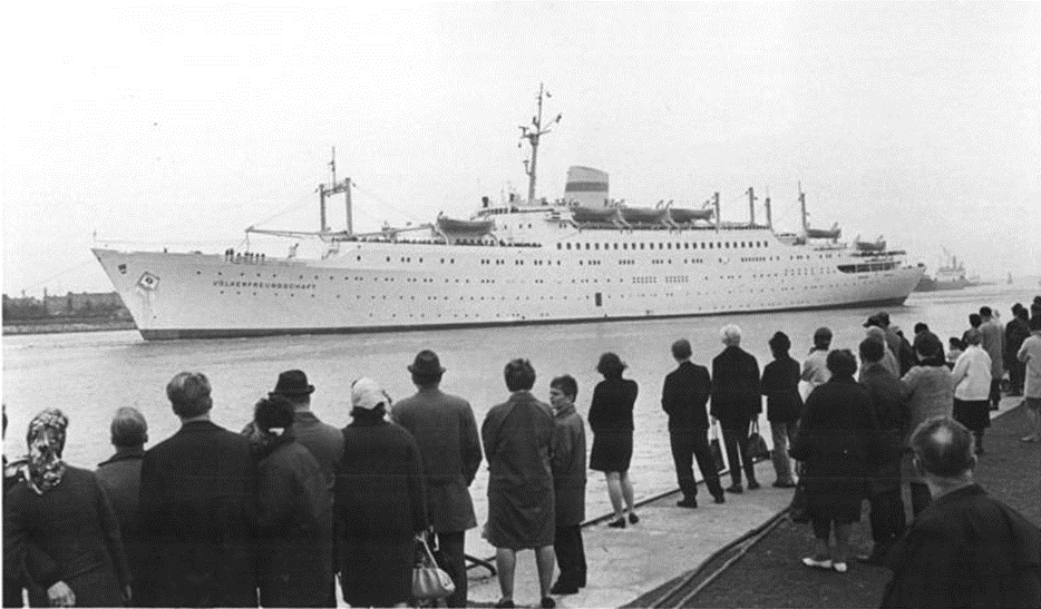 During the 1960s and 1970s the Bosporus witnessed the perilous stories of those who tried to slip through the Iron Curtain. The GDR cruise ship Völkerfreundschaft would regularly pass through the Bosporus for cruises along Varna, Yalta and Sochi. Whenever the ship would pass through the Turkish strait passengers would try to jump off and take their chance to reach the shore. Eventually, this prompted the GDR authorities to post men with bats along the rails and install screens to prevent these dramatic disembarkings. Regardless, a German pastor and resident of Istanbul, would prepare rowing boats whenever news reached him that the Völkerfreundschaft would pass through the Bosporus, in order to rescue potential refugees.